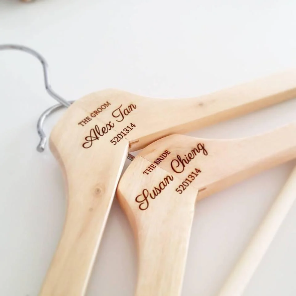- Personalized wedding hangers are a beautiful way to display your wedding dress and make a wonderful keepsake. Custom wedding dress hangers are also perfect for your photographer to capture pictures with your wedding gown on your special day.